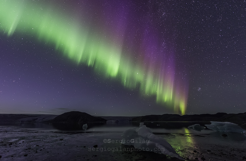 Northern Lights are one of the most impressive and beauty expressions of nature. I enjoyed them in Qaleraliq Glacier. South Greenland. The low tide get the sand wet and night became magic. What a magnificent spectacle showing us the greatness of nature.